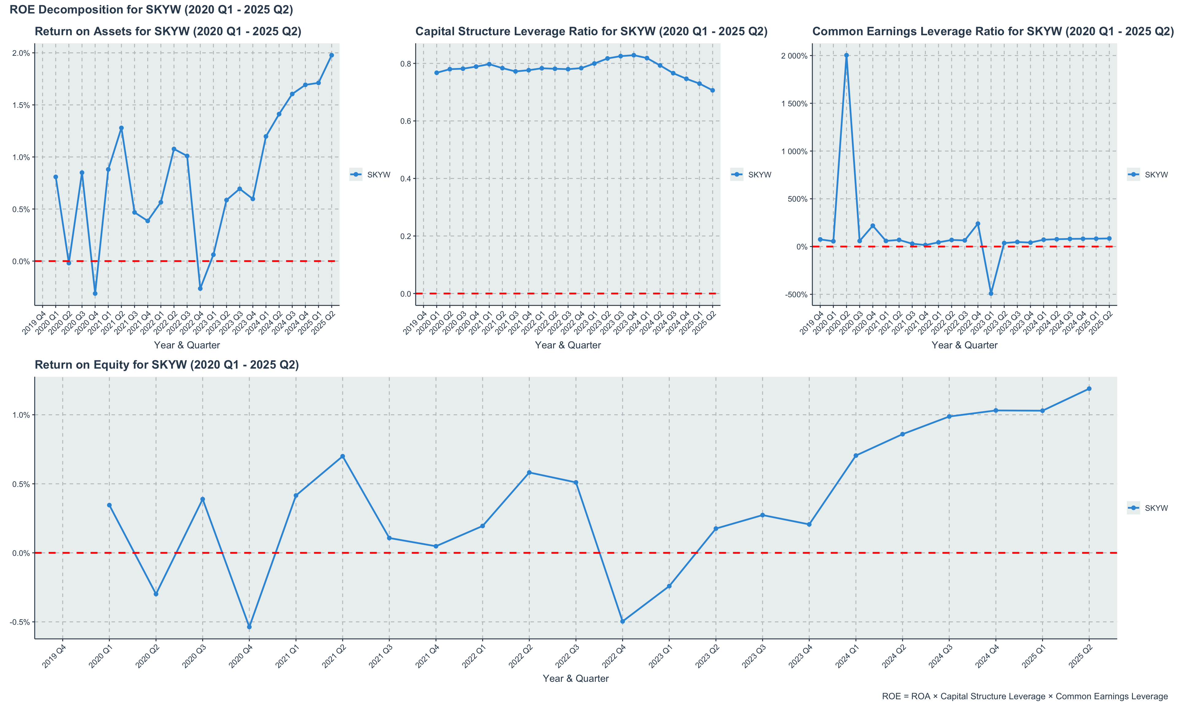 Decomposing ROE into its components provides valuable insights into the drivers of SkyWest’s shareholder returns. The analysis reveals how the company’s operational efficiency (ROA), financial leverage (Capital Structure Leverage), and earnings quality (Common Earnings Leverage) collectively contribute to its overall return on equity. This decomposition highlights the multifaceted nature of SkyWest’s financial performance and underscores the importance of each component in enhancing shareholder value.