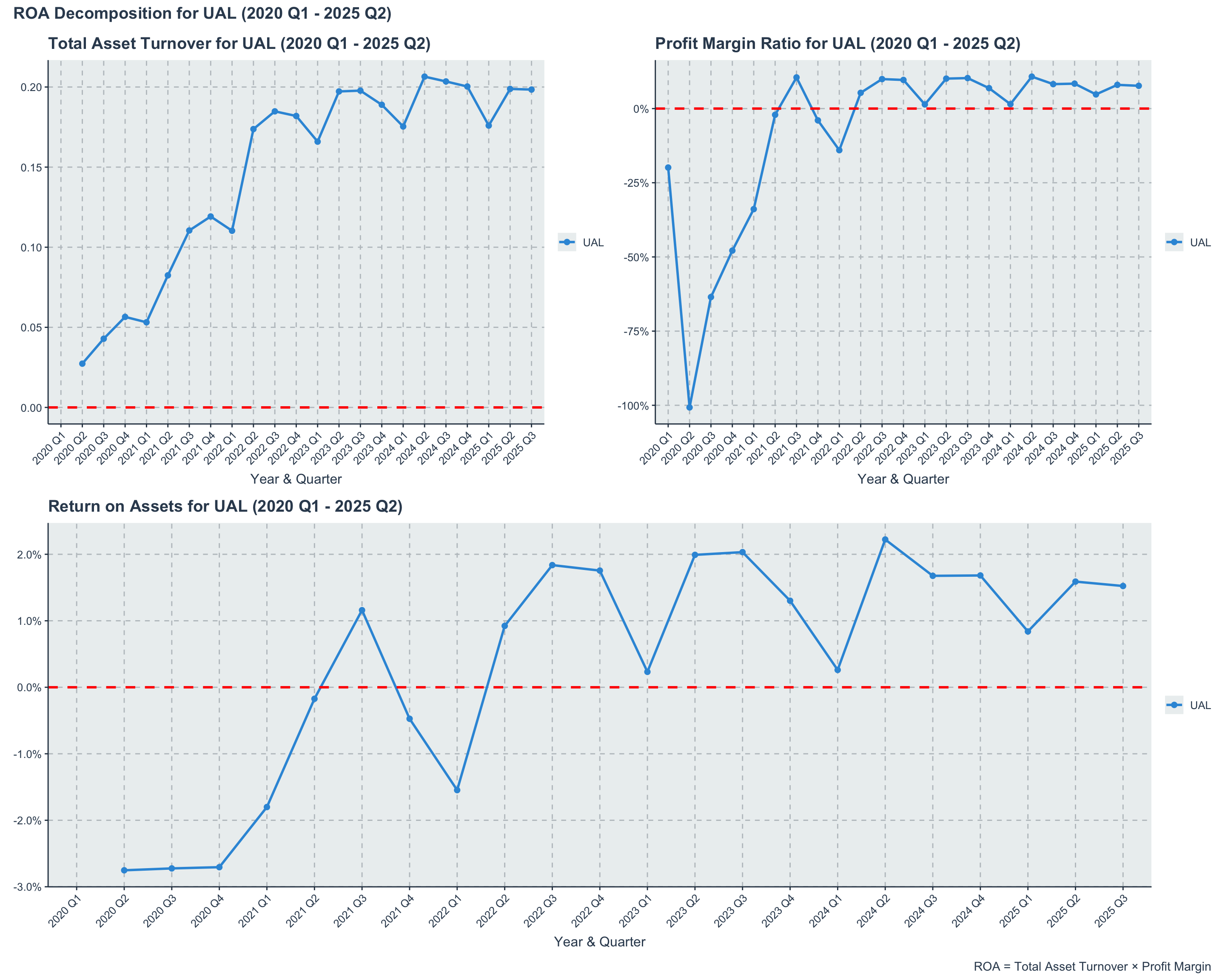 ROA decomposition illustrates how UAL’s asset efficiency and profitability jointly influence its overall return on assets. The interplay between these two components highlights the airline’s strategic focus on maximizing both revenue generation and cost management to enhance asset returns.
